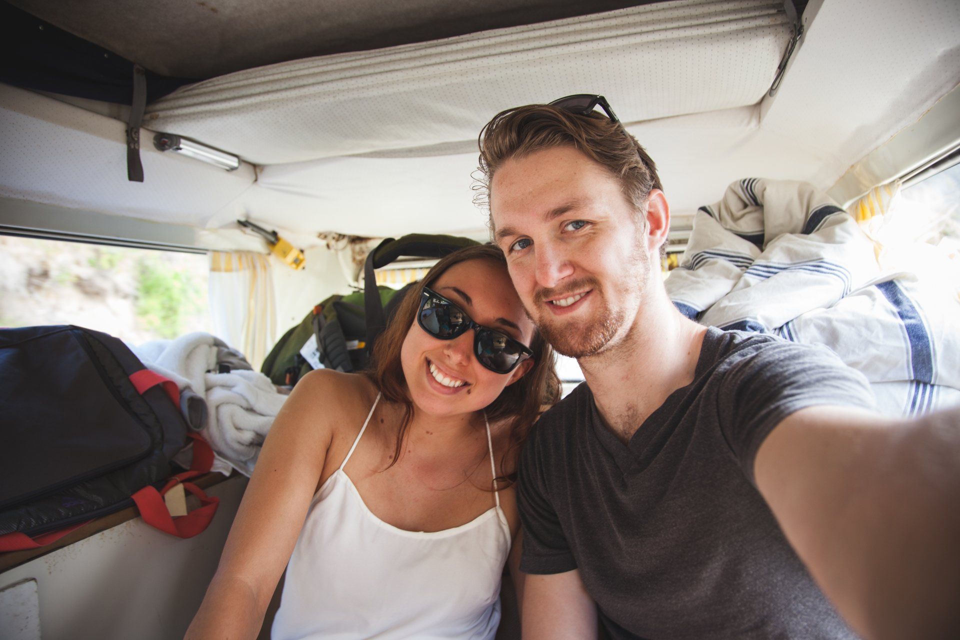 Miss Daisy is bright yellow and beautiful now but she wasn't always this way. We were young (still are), had a dream, and were willing to take a risk. We wanted to start a photo bus business and that means we needed a cute VW Bus. Ones that were fully restored were expensive and often didn't have the look we were going for. We spent months looking at VW buses on all sorts of used car platforms across the U.S and we found Miss Daisy on Craigslist. Yes, on sketchy Craigslist. She was listed for sale for a couple months and we had our eye on her since the owner stated it had a rebuilt motor (Later we found out that wasn't the case...) We decided we liked the idea of restoring a bus ourselves so we could customize it and slowly pay for the projects. We drove to Dandridge, TN where Miss Daisy was located and she was in bad shape. She barely had paint on her, just a poor gray primer. She had some visible body damage with dings here and there. She was not taken care of very well but to be fair she was 48 years old. Her headliner was moldy, and yes there was a distinct smell. Parts of the floor board was rusted through to the point where we could stick our fingers through. But none of those concerns mattered. We fell in love with her and her potential. We didn't see all the dirt and grime. We saw her cute smile and the happiness she would bring to newlywed couples. We wrote the man a check and trailered her back home to Chattanooga.