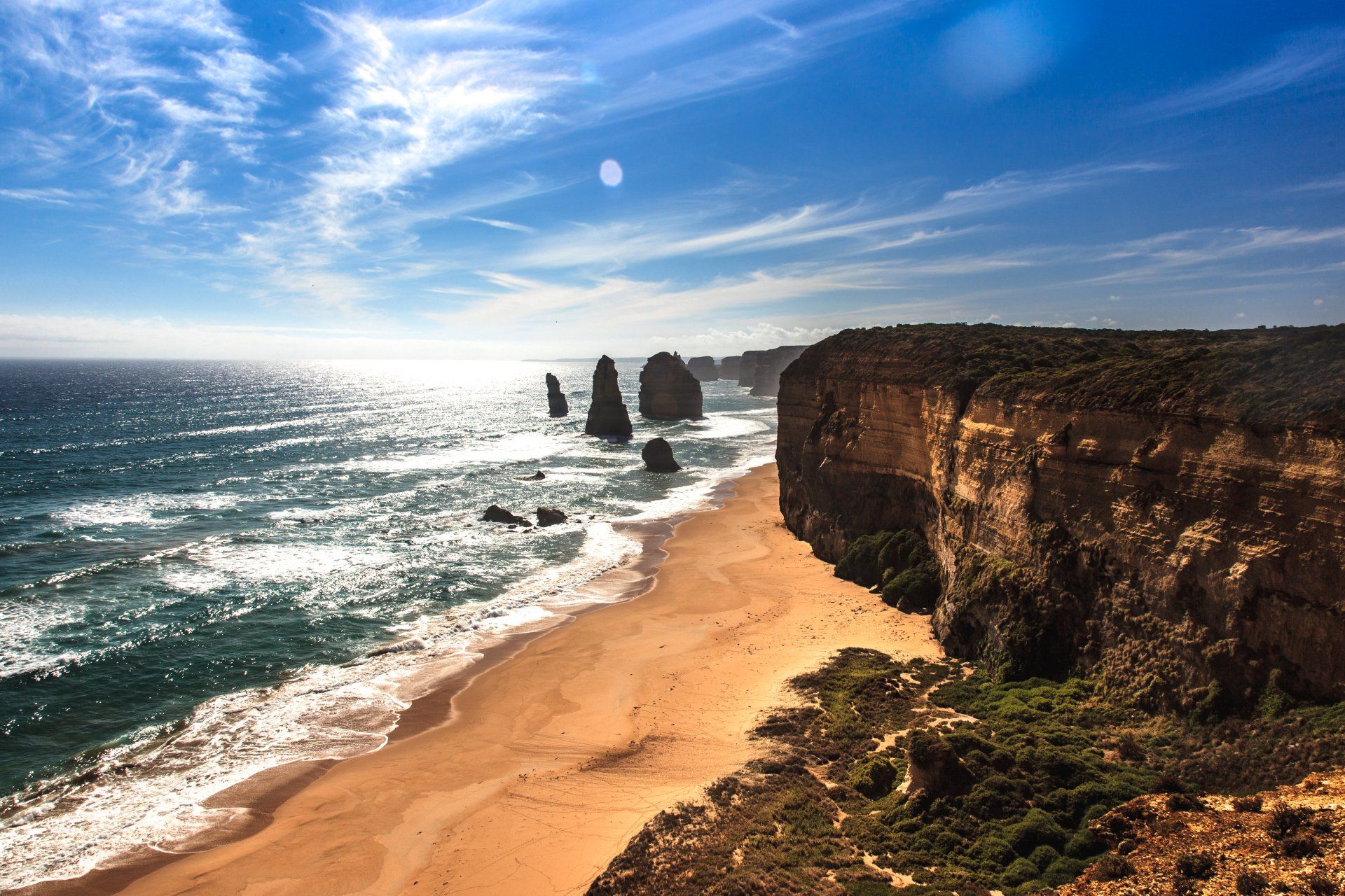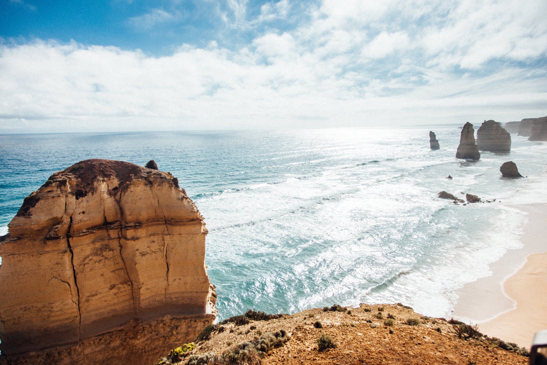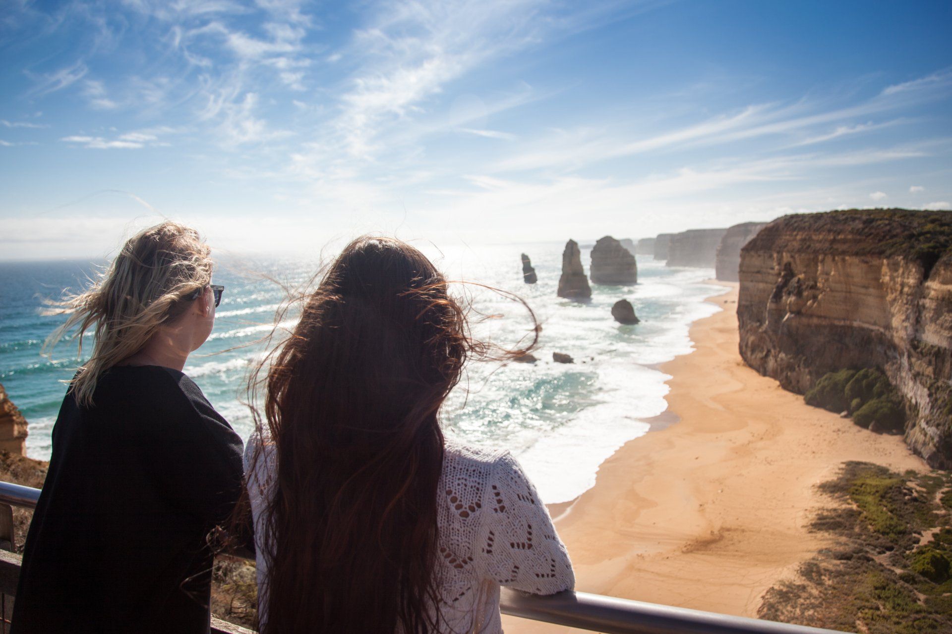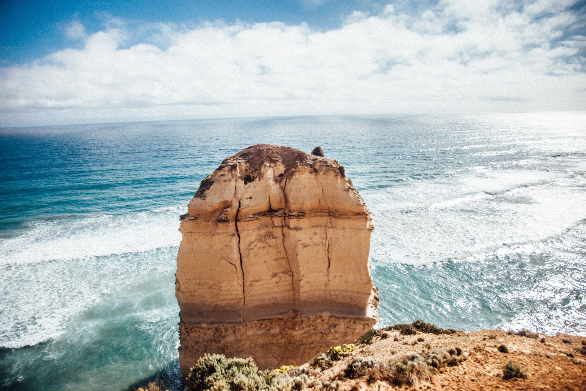 After 150 kilometers of fun-filled memories that will last a lifetime, we arrived at our destination of choice: The Twelve Apostles. These are a collection of limestone stacks off the shore of the Port Campbell National Park. Their proximity to one another has made the site a popular tourist attraction. There were once 12 of these massive natural formations, but due to erosion from the ocean, only 8 remain today. What a view they were! We trekked to an overlook, where we took these pictures.